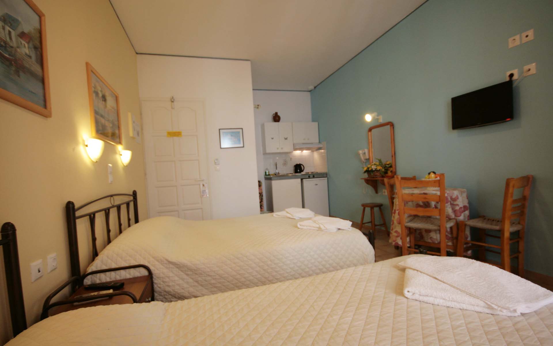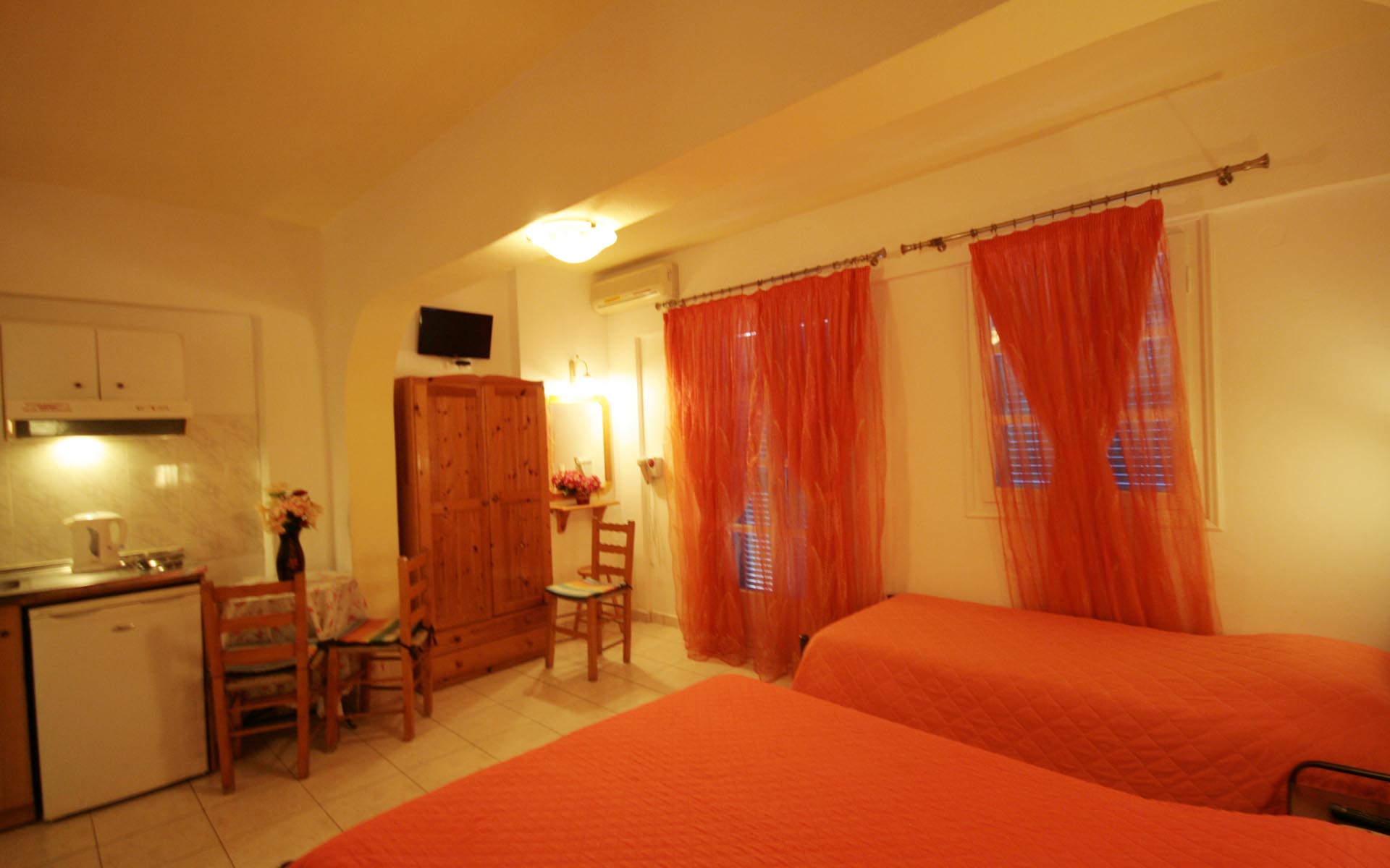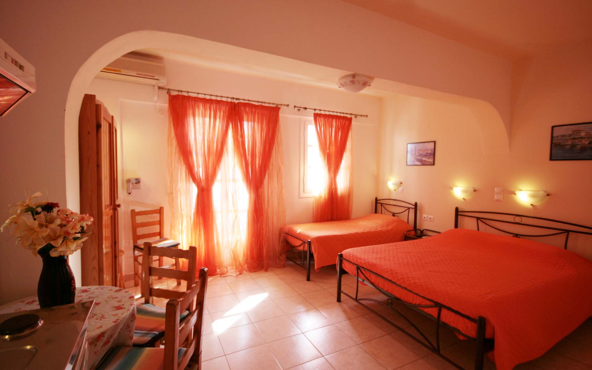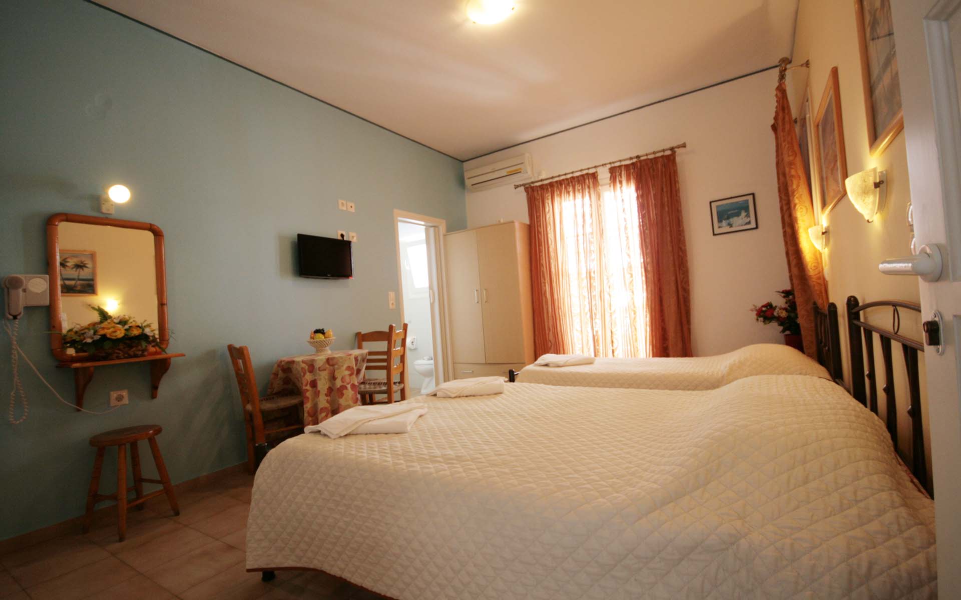 - 1 μονό κρεβάτι και 1 διπλό κρεβάτι