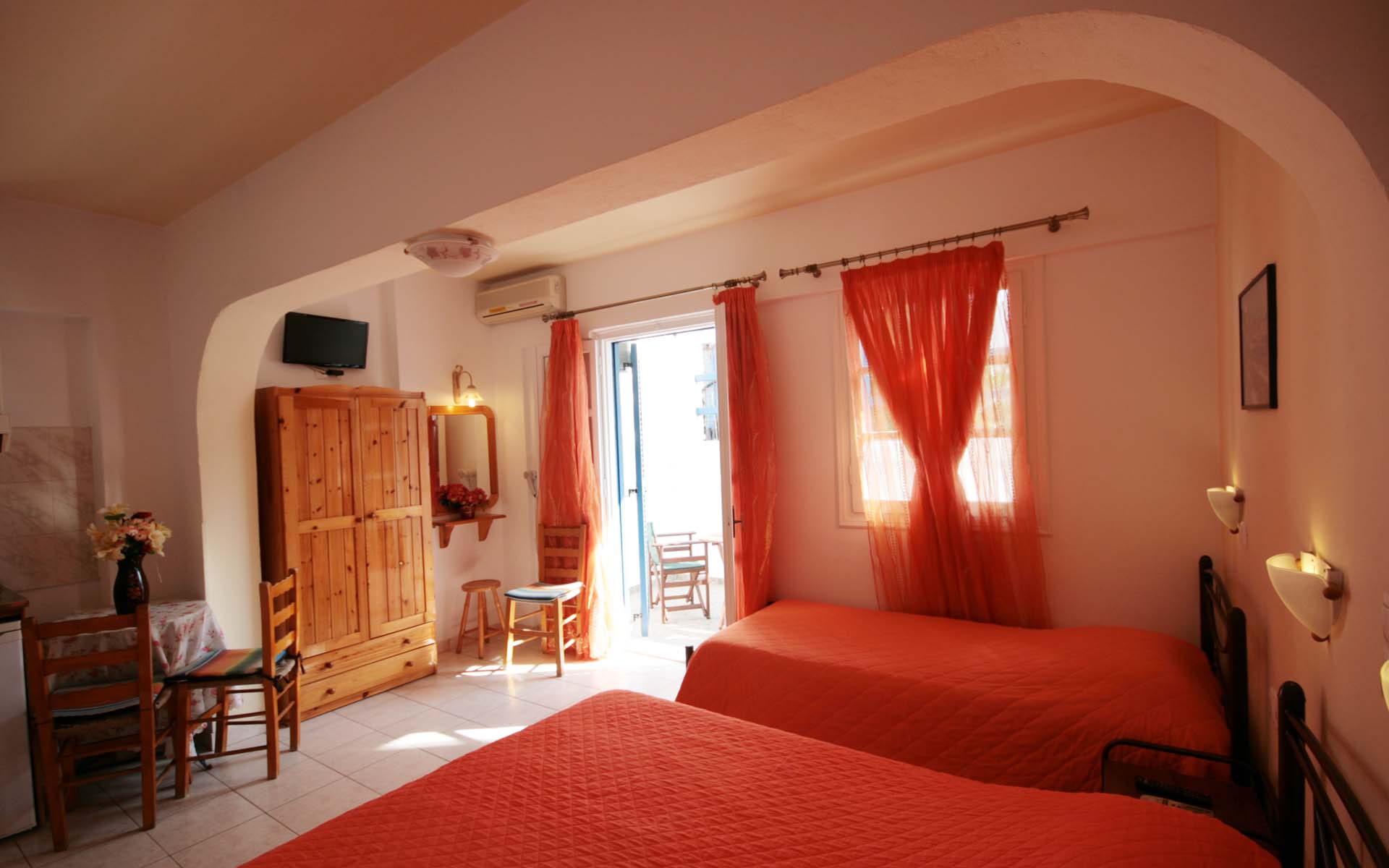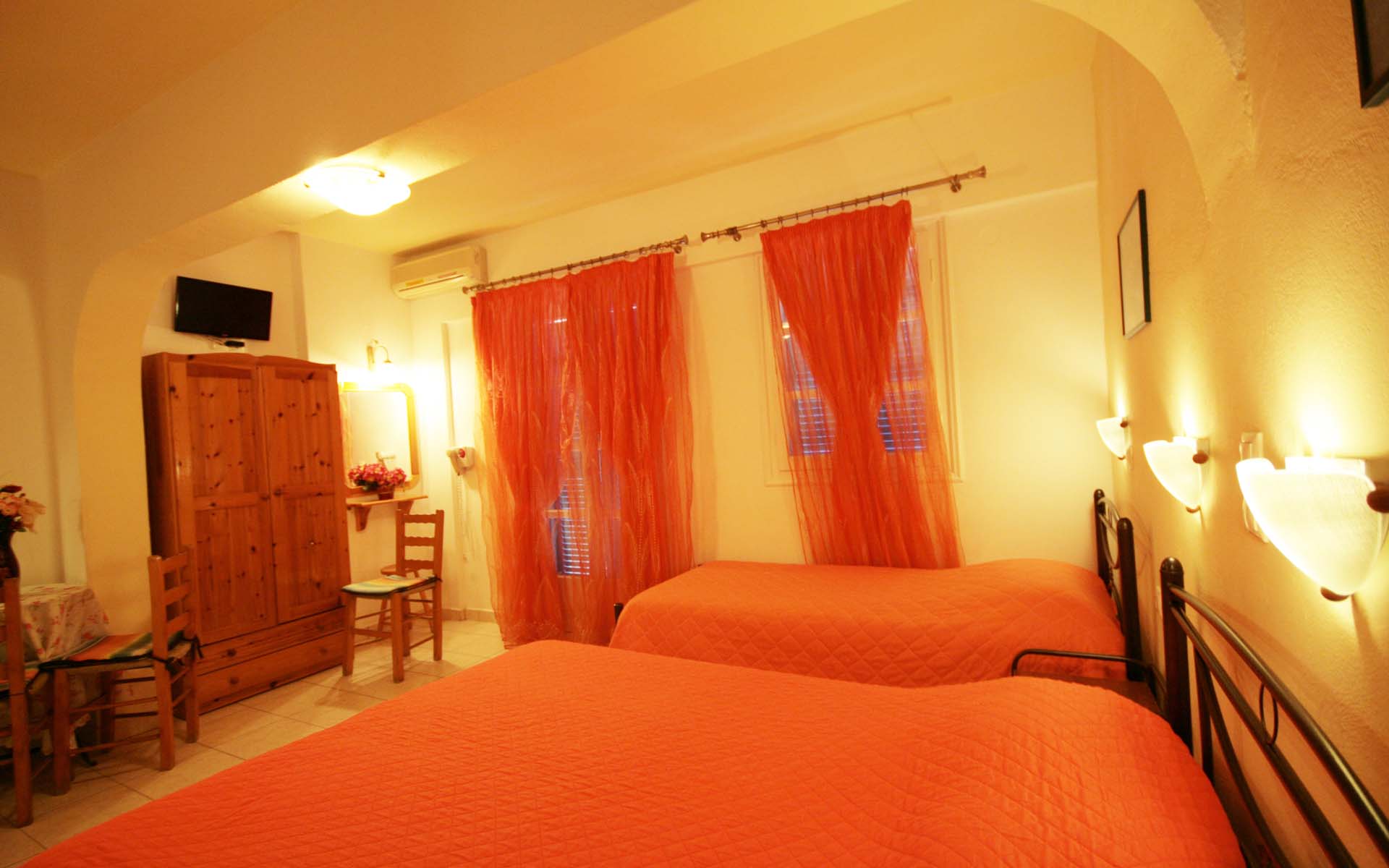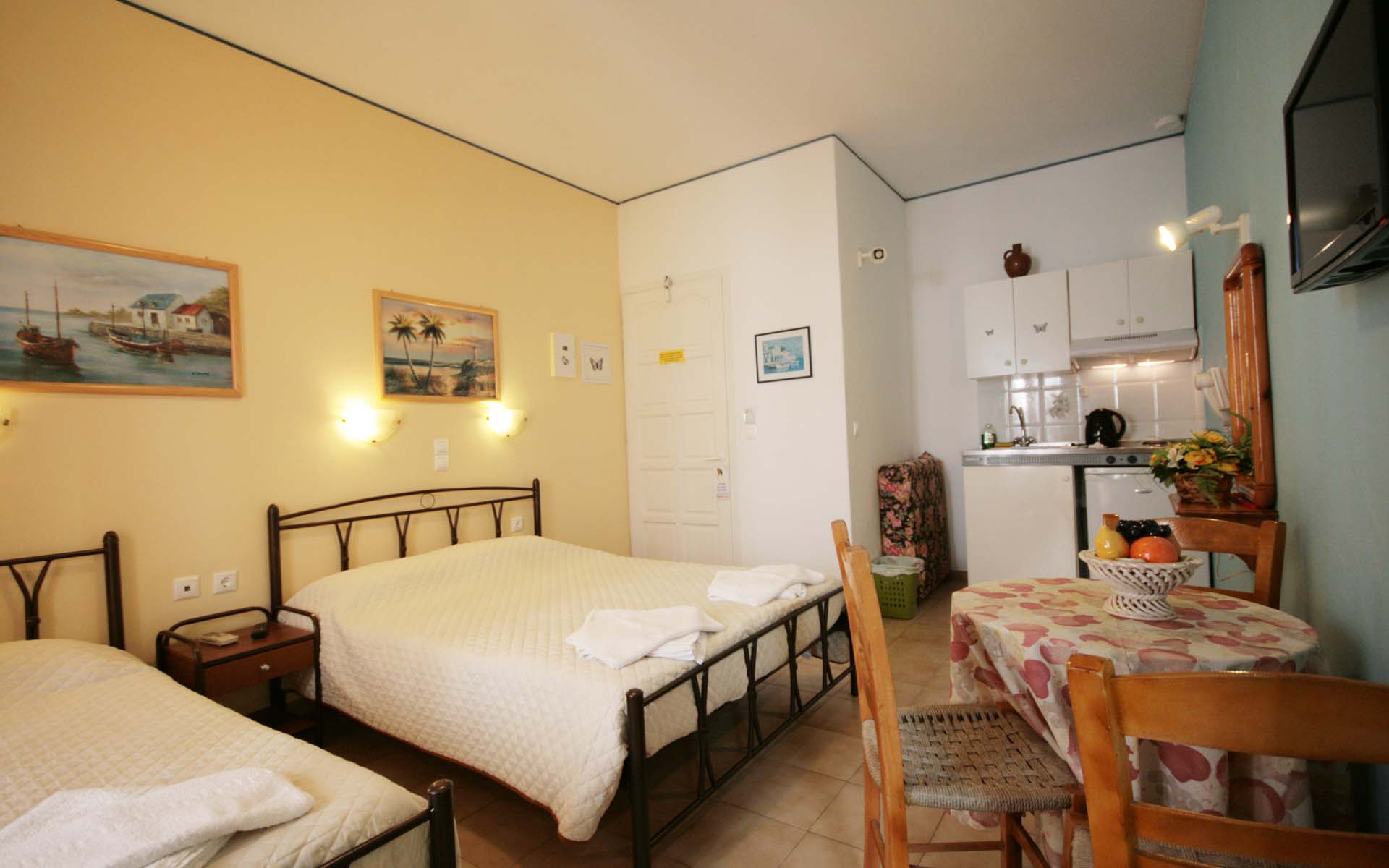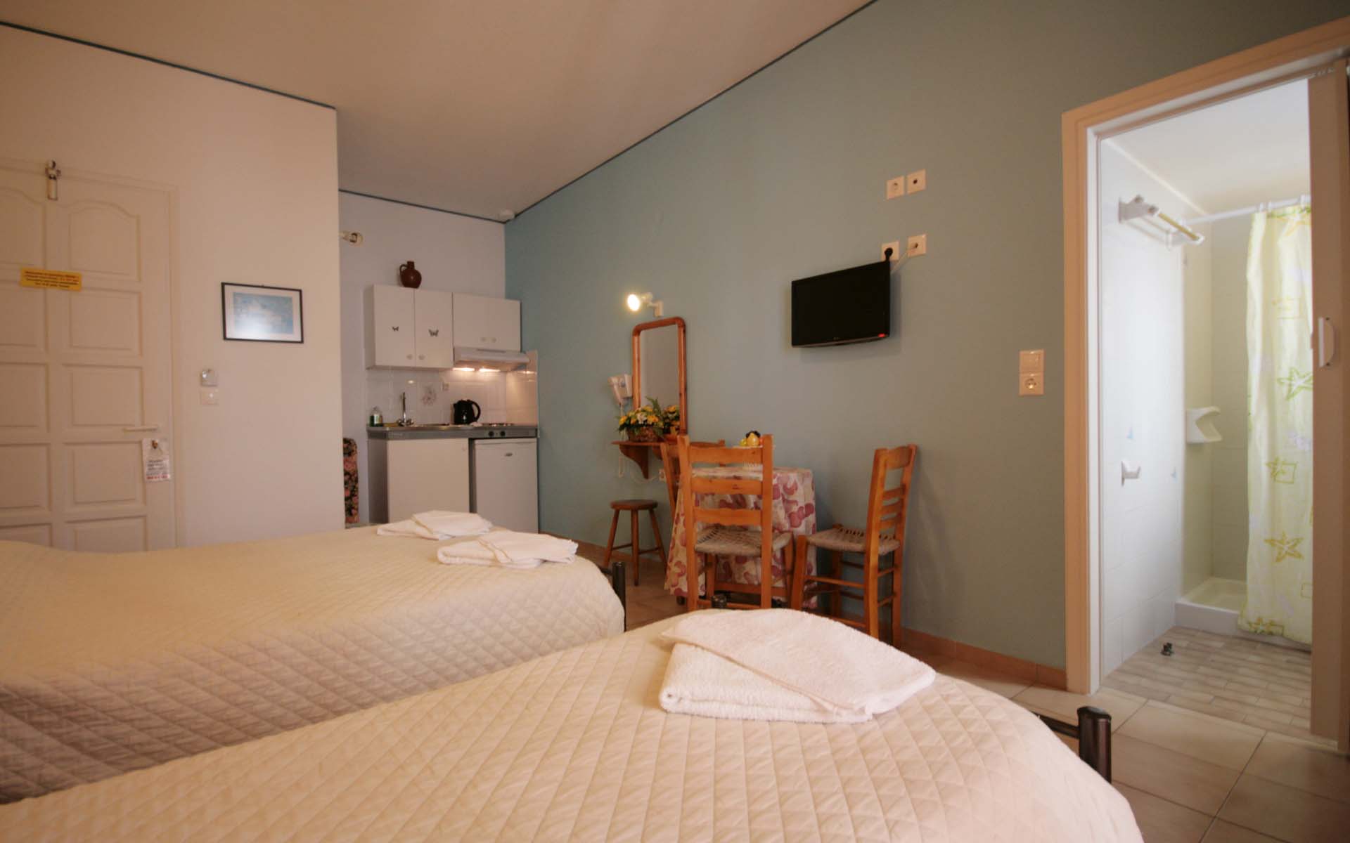 - 1 μονό κρεβάτι και 1 διπλό κρεβάτι